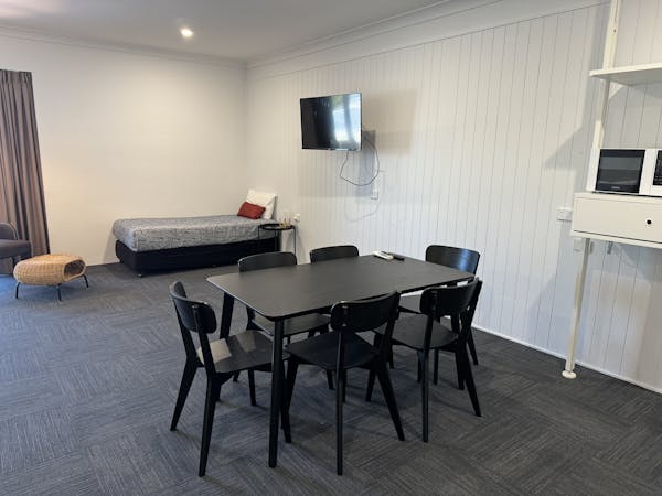 Room facilities include bar fridge; tea/coffee making facilities including a coffee pod machine (first 4 pods included for free); iron/ironing board; hair dryer; Free Wifi; microwave & toaster; your spacious Deluxe Queen Rooms also feature 42″ Flat Screen Smart TV and split system air-conditioning. Stay in quality Longreach accommodation.