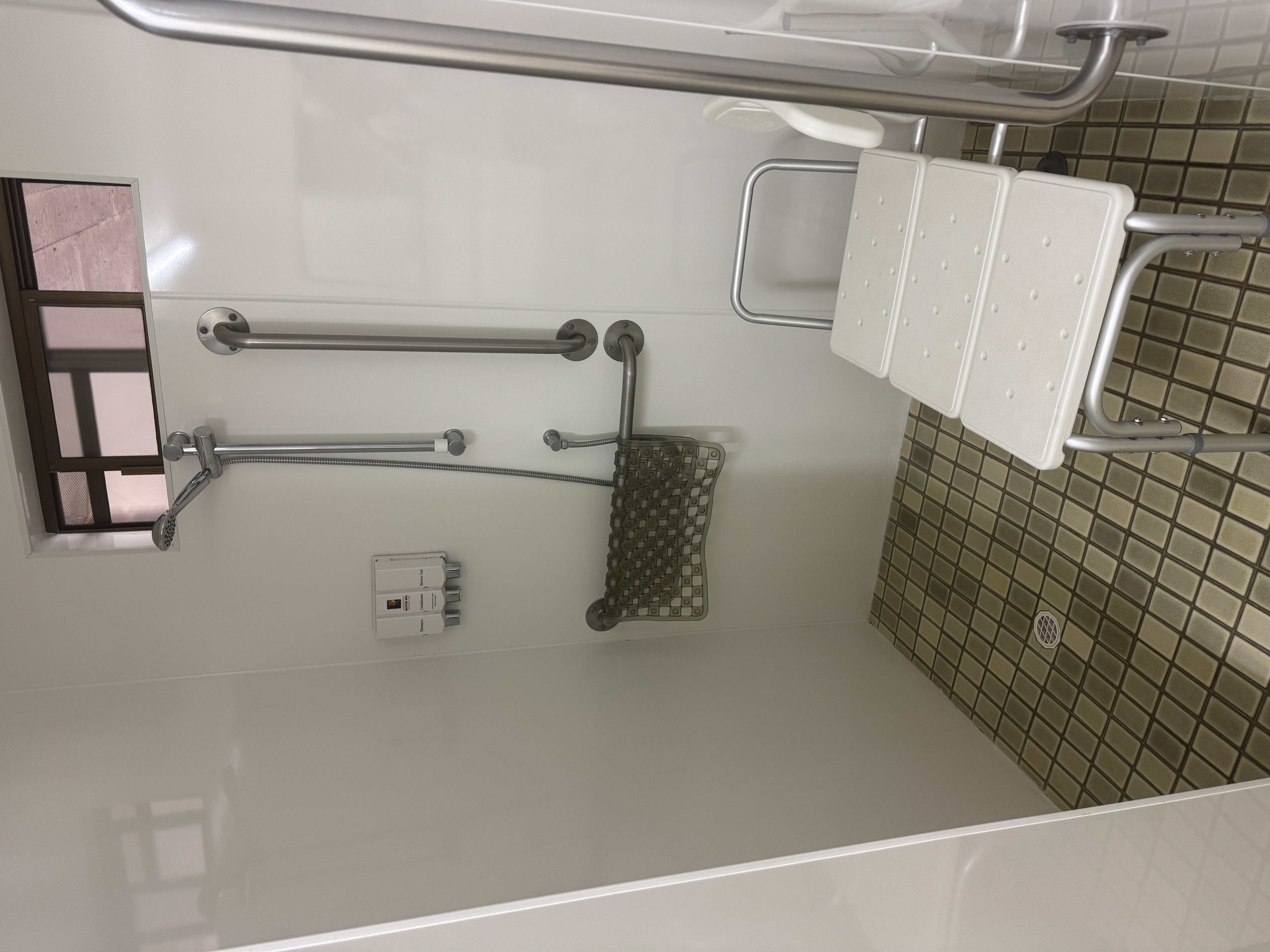 Fully Equipped Easy Access Room, Wheel chair access, hand rails, shower seat. Bedding is Queen and Single