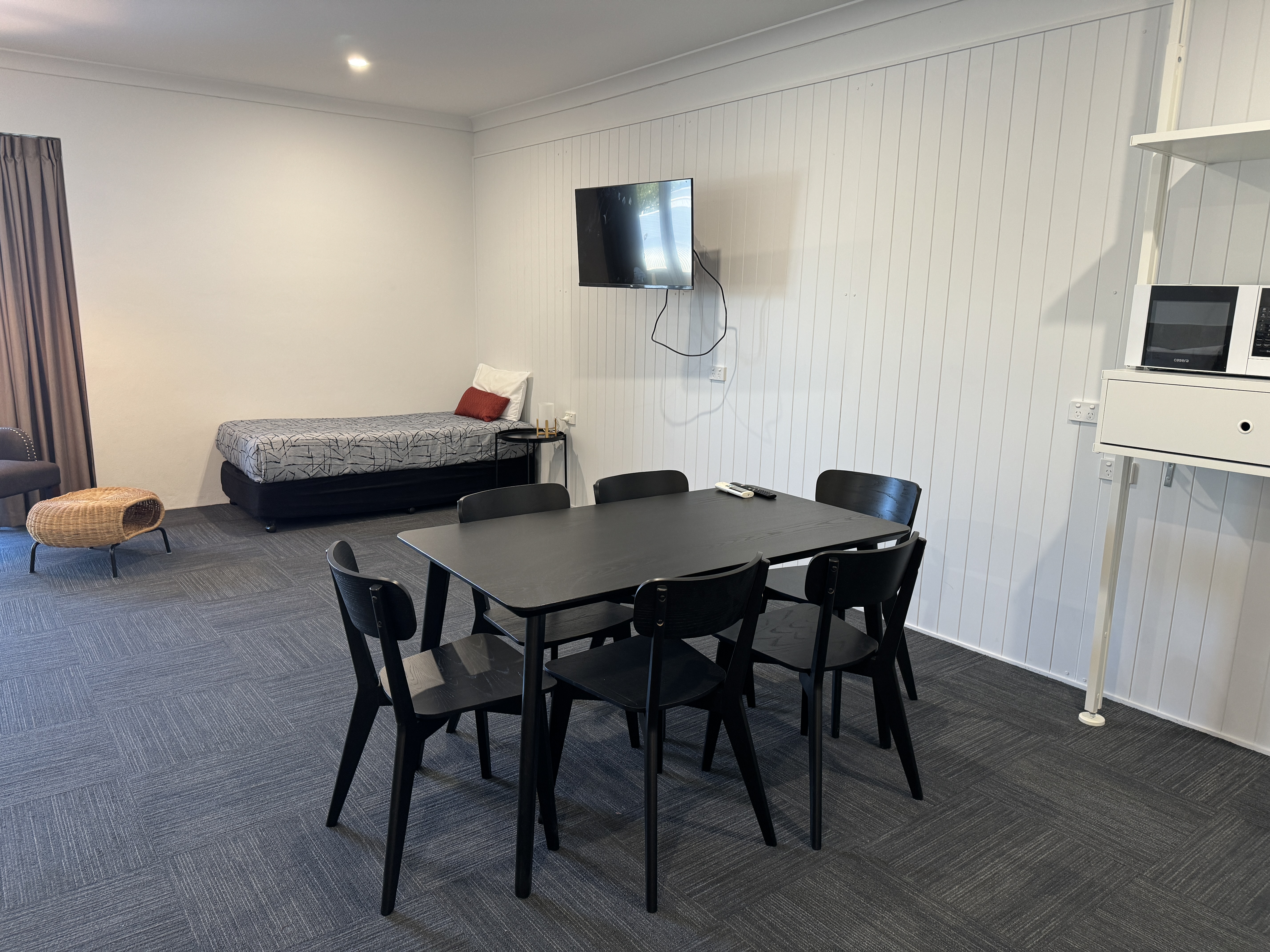 Room features: 5 star Queen beds; 42″ Flat Screen Smart TV; ensuite; bar fridge; tea/coffee making facilities; split system air-conditioners; fan; Iron/ironing board; new bathroom with hair dryer; Free Wifi; microwave & toaster. Stay in quality Longreach accommodation.